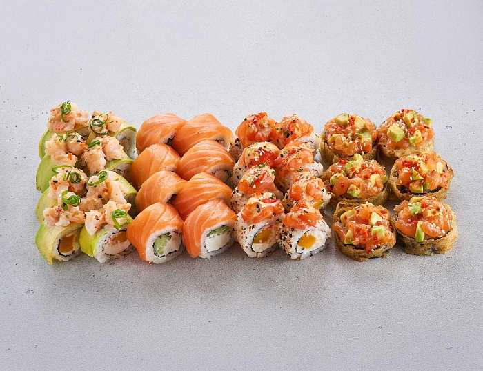 Без запятой, потому что выбирать не придется. Здесь всё, что любит настоящая драма-квин: классика, темпура, острый и нежный фреш — на любой вкус и каприз.
