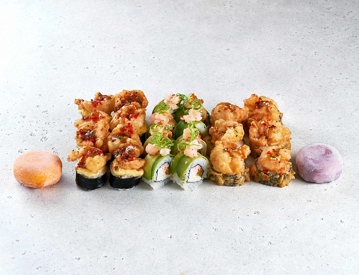 Те самые эмоции — увидел и хочууу. А как иначе, когда роллы и десерты вместе: классические, запеченные, темпура и фреш-роллы, а после — нежные моти. <br><br>