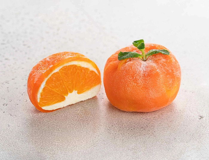 Главный символ Нового года: воздушный, яркий, нежный. Мягкое рисовое тесто, сладкий сливочный мусс и взрывной мандарин.