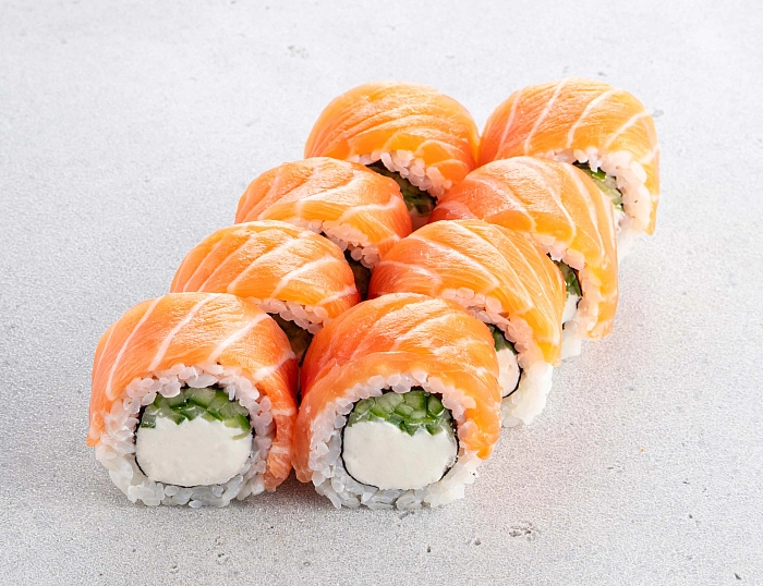 Ролл, который однажды возник в Америке и стал мировой классикой. Идеальный баланс вкуса благодаря сочетанию свежего атлантического лосося, риса, нежного сыра cremette и сочного огурца.