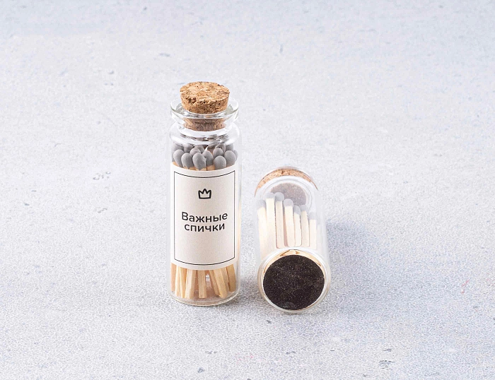 Идеальная находка для создания уютной и теплой атмосферы! Спички удобно хранятся в прочной стеклянной колбе, а зона поджигания – прямо на донышке. Эстетично, практично и со смыслом. Они станут красивой деталью вашего интерьера и помогут загадывать самые смелые мечты!